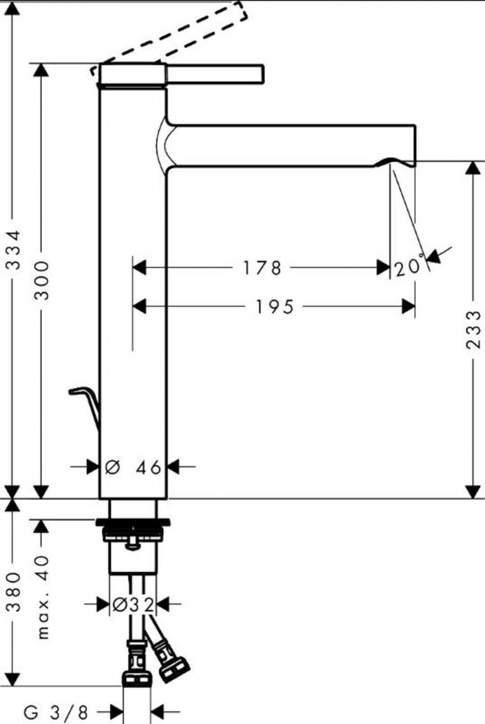 - dĺžka výtoku: 195 mm