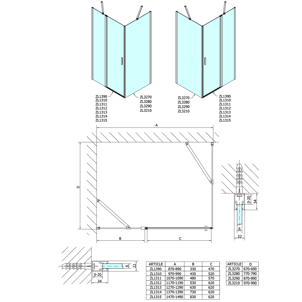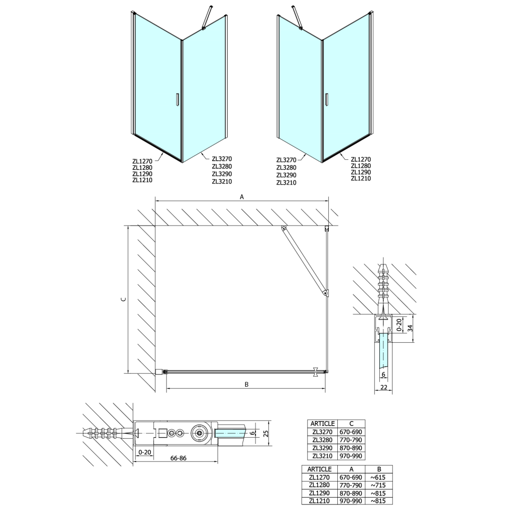 | Tvar | Pevná stěna ke sprchovým dveřím |
