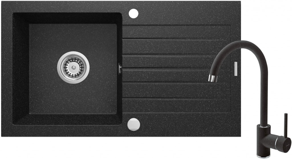 Granitový drez Deante séria ZORBA s drezovou pákovou batériou je vyrobená z najkvalitnejšieho prírodného granitového kompozitu. Existuje dôvod, prečo má 18-ročnú záruku výrobcu. Vyznačuje sa odolnosťou proti nárazu, vysokej teplote a náhlym zmenám, v súlade s európskou normou PN-EN 13310. Elegantný povrch nebledne a nestráca lesk. Dokonale sa hodí k dreveným a kamenným doskám. Praktický 1-miskový drez s odkvapkávačom je perfektným riešením v malých kuchyniach a štúdiových bytoch s kuchynským kútom.