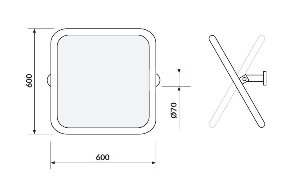 Sklopné zrkadlo ideálne do kúpeľní prispôsobených pre telesne postihnutých. Nastavenie uhla sklonu poskytuje možnosť voľného pohľadu ako v stoji, tak aj v sede. Zrkadlo je namontované do elegantného chrómovaného rámu so zaoblenými rohmi.