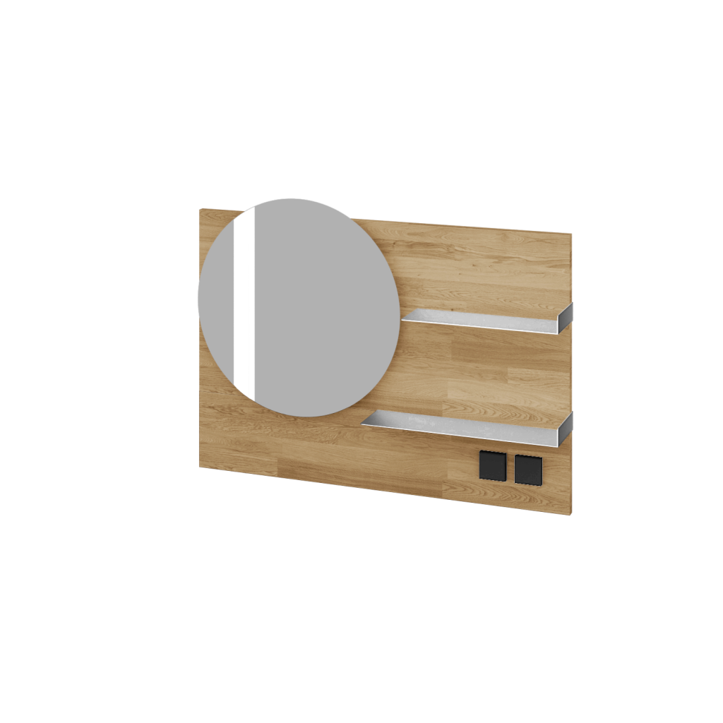 Elegancia šitá minimalizmomPrednosťou zrkadla je jeho konštrukčné riešenie. Samotné zrkadlo je usadené na doske, ktorú je možné upraviť celým radom dekorov a lakov.