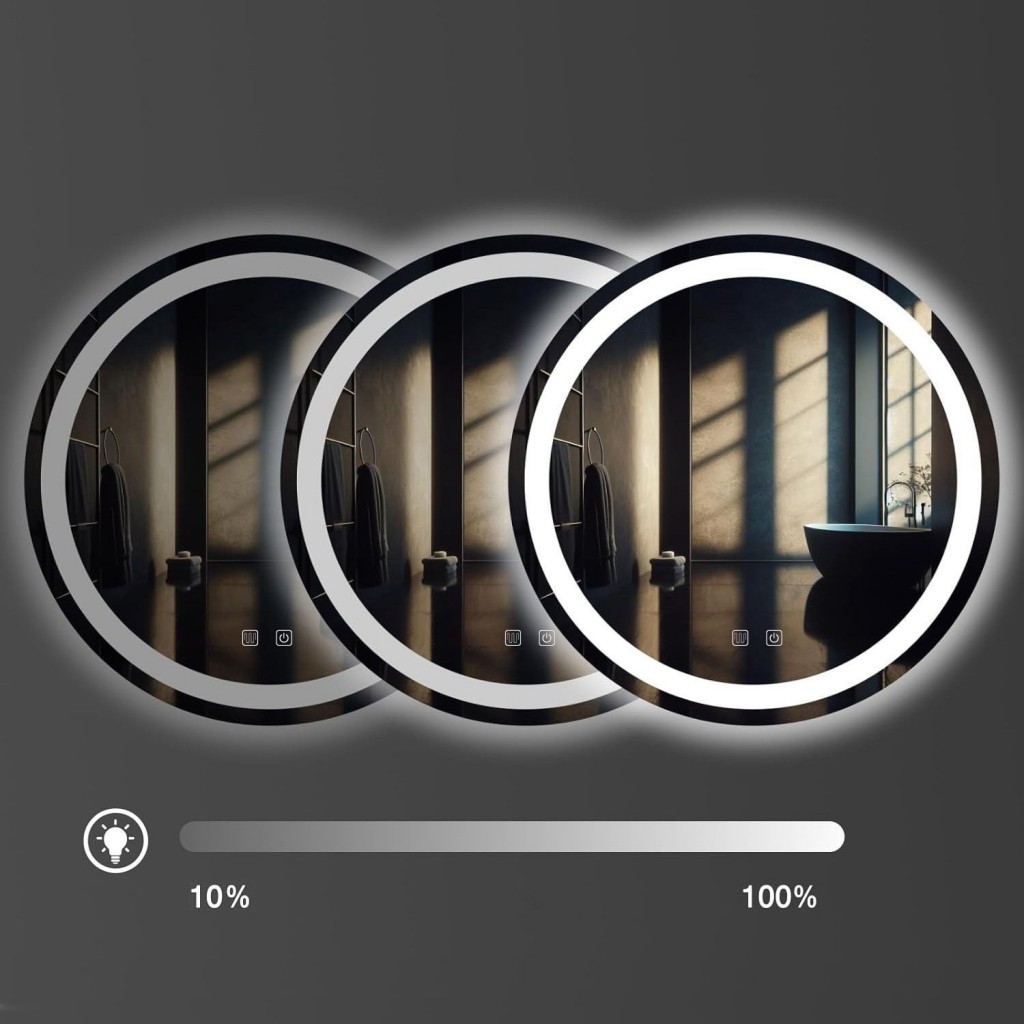 Okrúhle zrkadlo BAS s LED podsvietením je ideálny pre tých, ktorí oceňujú pohodlie pri používaní a moderný dizajn. Zrkadlo je vyrobené z najkvalitnejších materiálov, vyzerá perfektne a je veľmi odolné. Má na výber z troch farieb LED svetlá, ktoré je možné meniť dotykom – teplé, neutrálne a studené , a funkciu ohrevu, ktorá zabraňuje zahmlievaniu povrchu. Dotykový spínač umiestnený na povrchu zrkadla svieti, keď je funkcia aktívna.