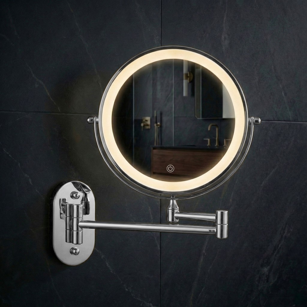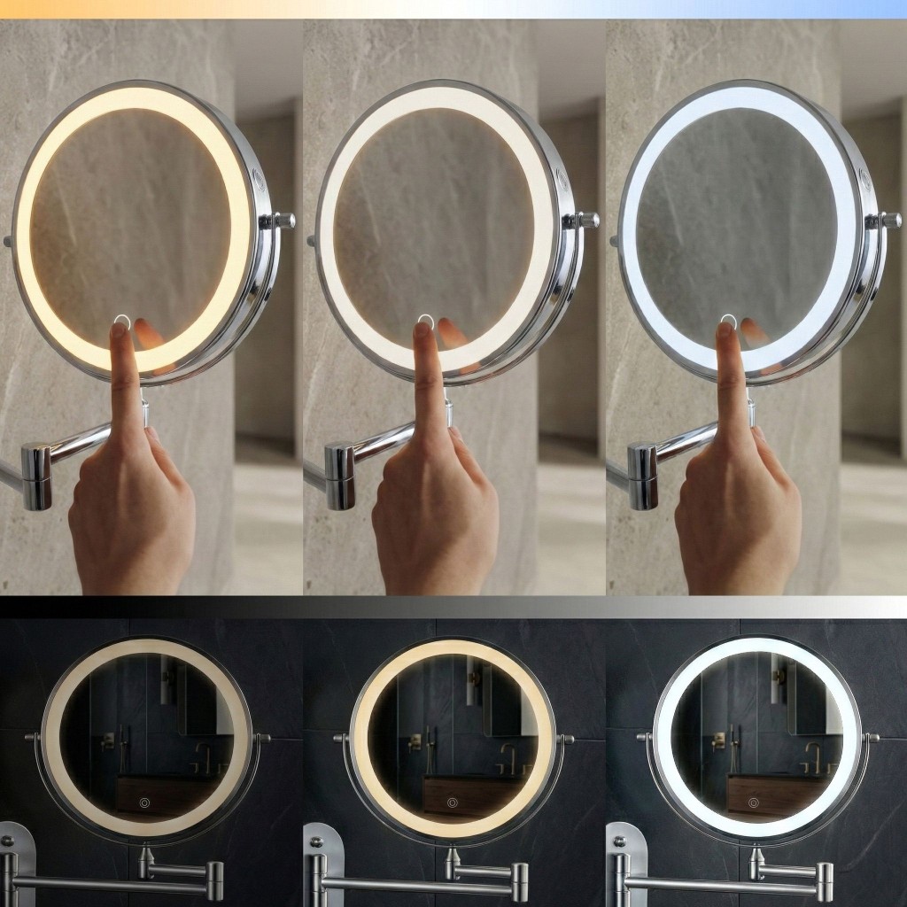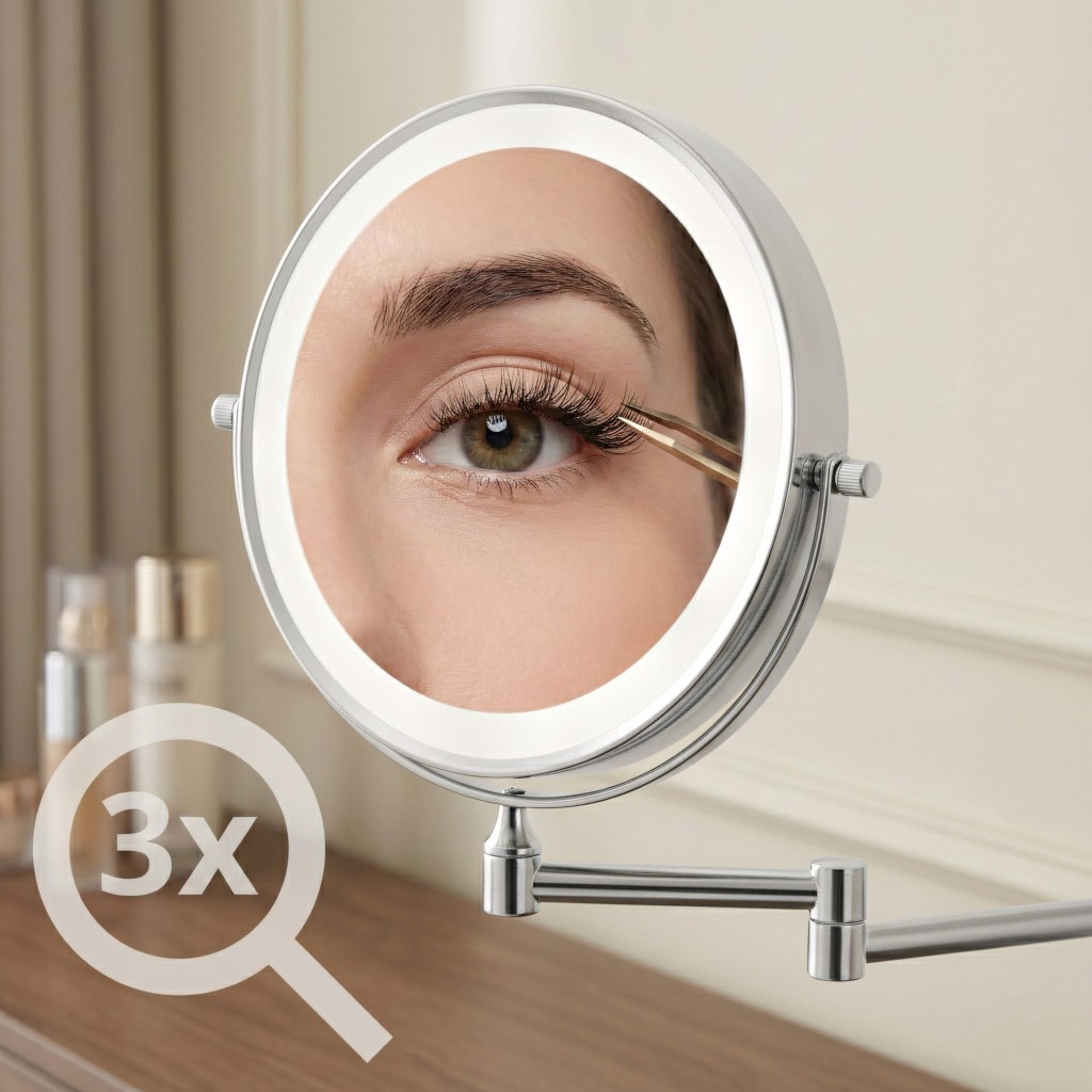 Nástenné kozmetické LED zrkadlo je praktické a elegantné riešenie ideálne do kúpeľne, šatne alebo k domácemu toaletnému stolíku. Tento obojstranný model na sklopnom ramene je nepostrádateľnou pomôckou pri líčení, holení i presnej starostlivosti – spája moderný dizajn s vysokou funkčnosťou. Obojstranná plocha (zväčšenie 3×) – jedna strana ponúka štandardný odraz, druhá trojnásobné zväčšenie. Otočný kotúč o 360 ° umožňuje rýchlu zmenu strany. LED osvetlenie s reguláciou - integrovaný svetelný rám ponúka tri farby svetla: teplú, neutrálnu a studenú. Dotykové tlačidlo umožňuje plynulé stmievanie aj zosvetľovanie. Pohodlné nabíjanie USB – vstavaná batéria sa ľahko nabíja pomocou priloženého kábla USB Type-C. Osvetlenie funguje bezdrôtovo, bez trvale visiacich káblov. Kĺbové rameno – pevná konštrukcia umožňuje zrkadlo približovať, odďaľovať aj sklopiť naplocho k stene. Kĺby zaisťujú voľnosť nastavenia ideálneho uhla. Oceľová konštrukcia – odolná oceľ zaručuje stabilitu pri používaní a estetická povrchová úprava dodáva moderný, elegantný vzhľad. Optimálny rozmer – priemer 20 cm predstavuje ideálny kompromis medzi pohodlím a úsporou miesta. Moderný make-up zrkadlo na ramene reálne zvyšuje komfort každodennej starostlivosti. Premyslená konštrukcia, skvelé osvetlenie tváre a bezdrôtová prevádzka z nej robí pohodlnú a univerzálnu voľbu do interiéru.