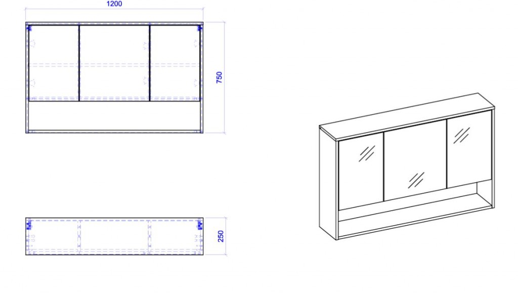 BORNEO COSMOS 843 – zrkadlová skrinka 120 cm s 3 dvierkami (FSC)