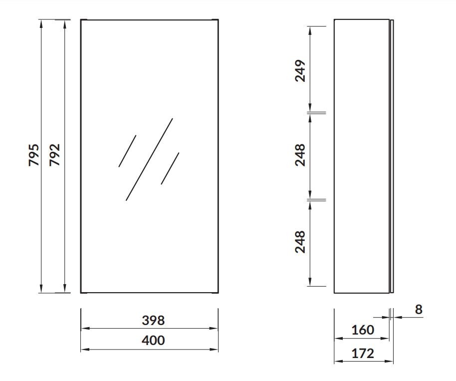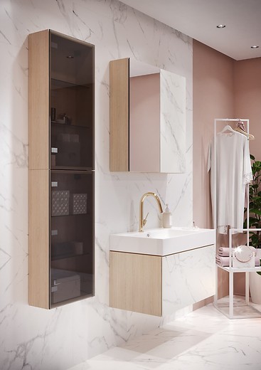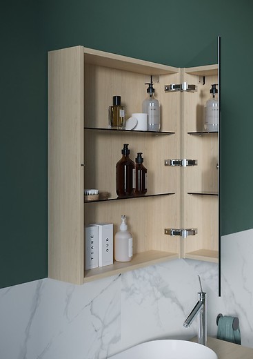 Zrkadlová skrinka INVERTO je kúpeľňový nábytok s nalepeným zrkadlom na prednej strane, vďaka ktorému v sebe snúbi funkčnosť a dobrý dizajn. Skrinka je vyrobená z dosky AQUASAFE odolnej voči vlhkosti a odolnej voči podmienkam v kúpeľni. Vnútro a korpus skrine sú ukončené laminovou doskou vo farbe duba a vybavené elegantnými 2 sklenenými policami z dymového, tvrdeného skla o hrúbke 5 mm. Nábytok má dodatočné, spevňujúce vnútorné lišty a odolné pánty s funkciou „ push “.