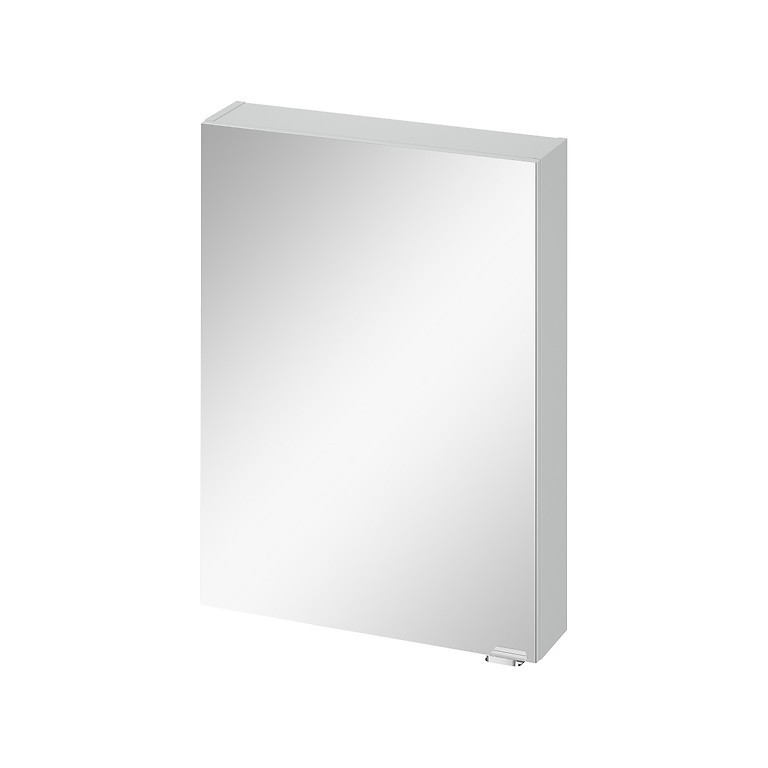 Horná zrkadlová skrinka z laminovanej drevotrieskovej dosky a so striebornou úchytkou. Vnútri sú 3 sklenené police a pánty sú s mäkkým dovieraním. Drevotriesková doska použitá v skrini má certifikát FSC MIX CREDIT SGSCH-COC-007574.