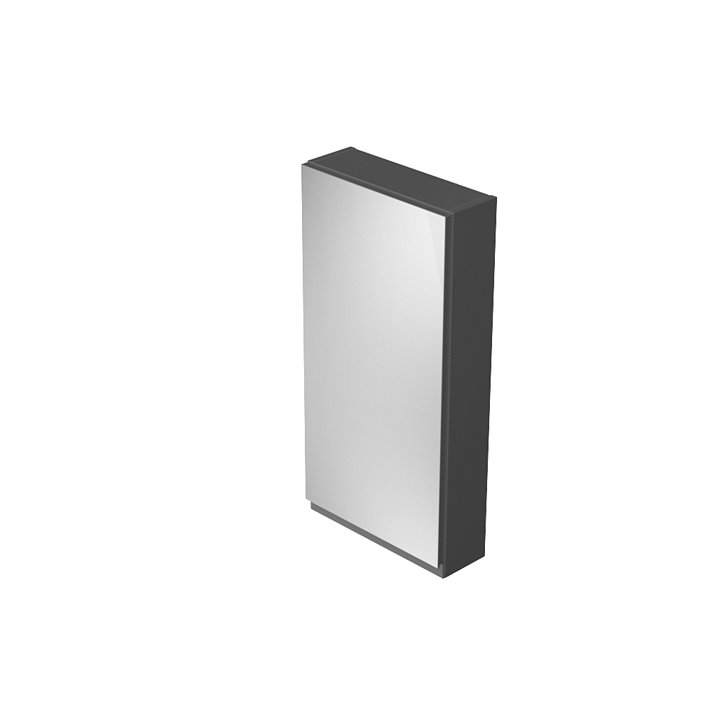Zrkadlová skrinka MODUO 40 je určená pre drobné kúpeľňové doplnky. Svojou hĺbkou je prispôsobená nástenným skrinkám a otvorenému modulu z tejto kolekcie. Vďaka tomu môžete vytvoriť elegantnú zostavu, ktorá vytvorí jednotnú plochu nad umývadlovou alebo toaletnou zónou kúpeľne. Korpus zrkadlovej skrinky je vyrobený z lakovanej nábytkovej dosky antracitovej farby s matnou povrchovou úpravou. Otváranie dvierok je univerzálne, jej orientáciu si zvolíte pri jej montáži. Skrinky série MODUO majú pohodlné frézované úchyty, ktoré vytvárajú dekoratívne prvky a umožňujú jednoduché otváranie a zatváranie dverí alebo šuplíkov. Dvierka sú vybavené systémom mäkkého zatvárania. Vnútri skrine sú 3 police: jedna nábytková (pevná) a dve sklenené z tvrdeného skla.