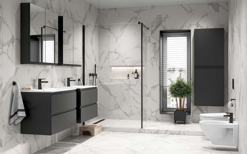 vynikajúcou voľbou pre ľudí, ktorí oceňujú klasickú elegantnú kúpeľňu. Drevené prvky sú vyrobené technológiou AQUASAFE, ktorá ich navyše chráni pred vlhkosťou v kúpeľni.