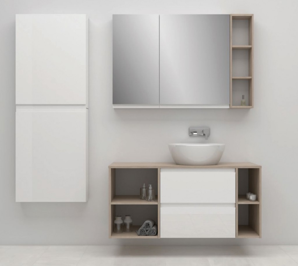 Nová kolekcia MODUO je rozsiahla ponuka kúpeľňového nábytku, kedy je možné neobmedzené usporiadanie podľa možností priestoru a vašej predstavy. Kúpeľňové skrinky sú vyrábané v bielej a šedej farbe, kedy možno spojiť s kombináciou dosky a police v dubovom prevedení. Materiál je odolný proti vlhkosti, vďaka použitiu technológie AQUASAFE, kedy zostane po mnoho rokov v dokonalom stave.