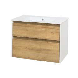 Mereo Opto, kúpeľňová skrinka s keramickým umývadlom 61 cm, biela/dub Riviera (CN930)